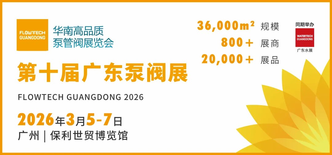 “华南泵阀首选商贸对接平台”——第十届广东泵阀展携手广东水展于3月5日在广州 | 保利世贸博览馆再度启航!承载着十余载积淀与期盼,2026广东泵阀展焕新出发,立足华南开放前沿,集结全产业链力量,为开春的泵阀行业注入澎湃动能!