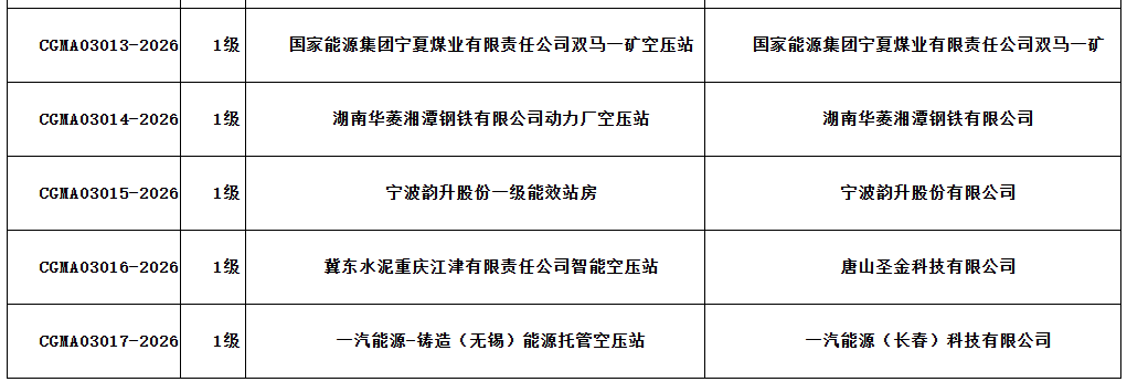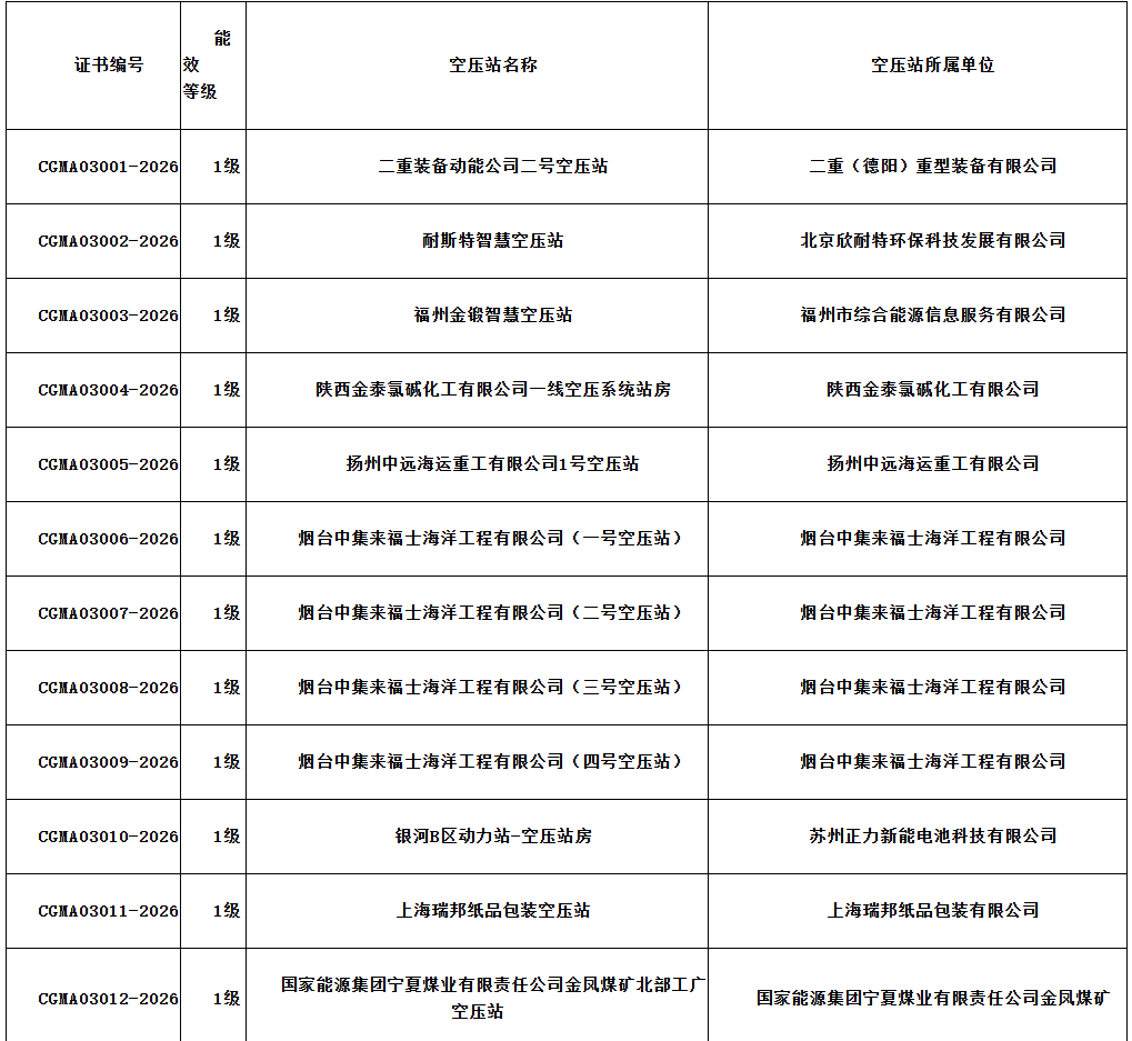 您当前的位置:泵业网 >>行业新闻>2026年一季度30家空压站获能效评级一级能效!