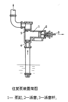 主要部件:泵缸、活塞,活塞杆及吸人阀、排出阀。