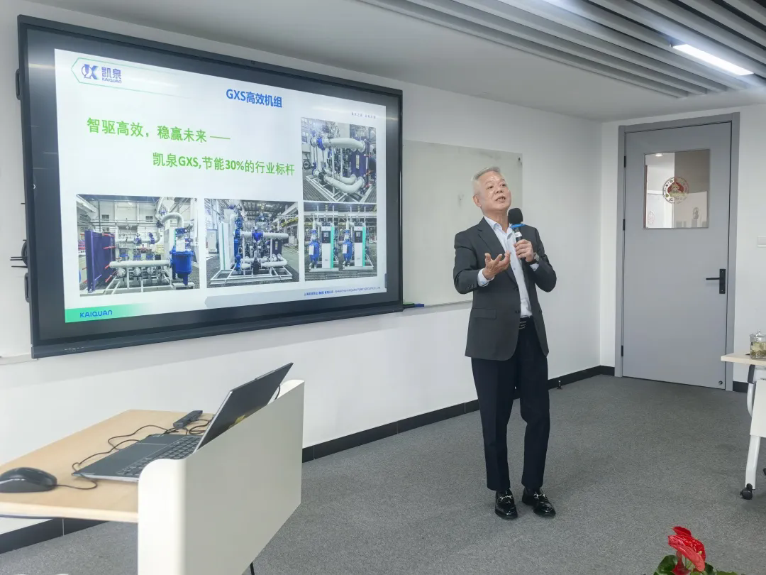 座谈会上,凯泉技术团队就《智慧变频泵及泵组在数据中心应用研究》、《储能液系统用卧式不锈钢多级泵研究》、《凯泉双吸泵在数据中心领域的研究》进行了分享。