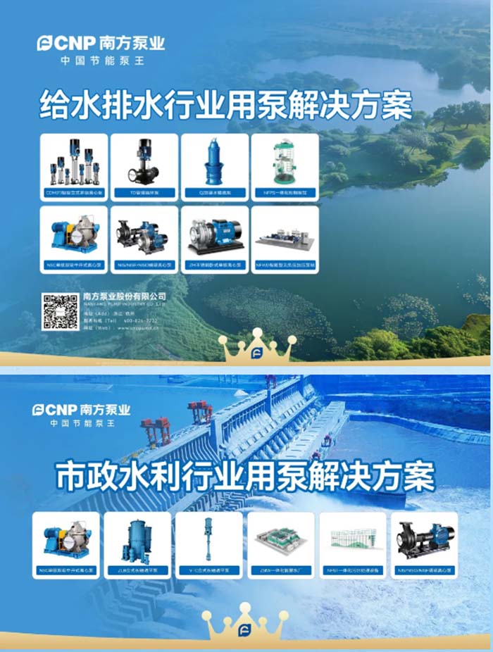 “十四五”期间,我国生态环境治理虽取得显著成效,但仍然面临多重挑战,架构性污染压力依然突出、水环境治理短板明显、生态保护与修复难度加剧等。因此,水行业对高效节能、智能化的泵设备需求日益凸显,南方泵业作为中国泵行业领军者,聚焦行业痛点,专业化定制全新的“给水排水行业用泵解决方案”和“市政水利行业用泵解决方案”。搭载制造业单项冠军产品-轻型立式多级离心泵,WQ污水污物潜水电泵、NSC单级双吸中开式离心泵、QZB潜水轴流泵、NFPS一体化预制泵站等,高效节能的泵产品让每一滴水都成为环境保护与生态复苏的新动能。