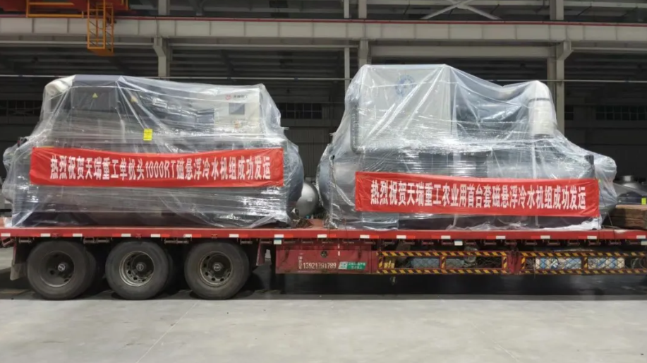 7月9日,天瑞重工2台1000冷吨磁悬浮冷水机组通过整机性能检测后成功下线发运。该项目不仅是天瑞重工磁悬浮冷水机组在农业领域的首台套应用,更实现了单机头制冷量达1000冷吨的重大突破。机组将用于用户生态区内智慧温室的恒温供冷,为农作物的产量及品质提供精准保障。