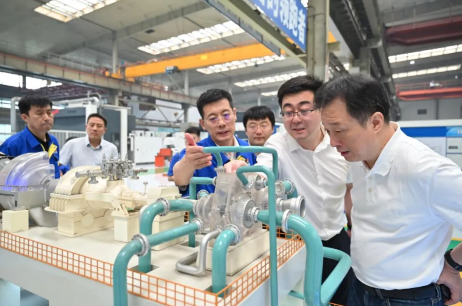 沈鼓集团总工程师张勇等对郑机所一行的到访表示热烈欢迎,并陪同王伟一行人参观沈鼓集团展览中心、总装车间、转子车间及定子车间。