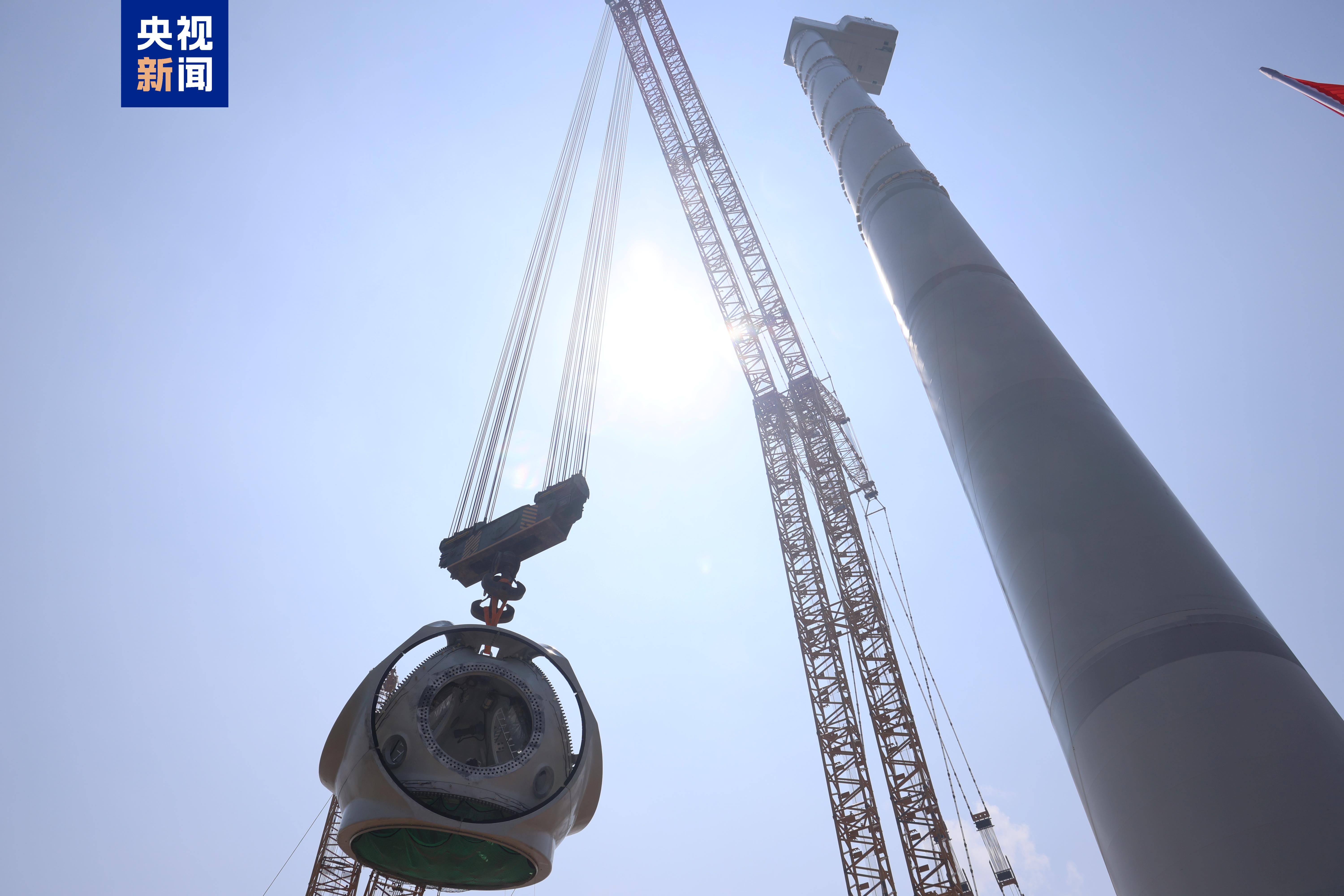 此次吊装的26兆瓦级海上风电机组由超过3万个零部件构成,轮毂中心高度相当于50多层居民楼高,其风轮扫风面积达7.7万平方米,是目前全球单机容量最大、叶轮直径最长的海上风电机组,并且实现全国产化设计制造。