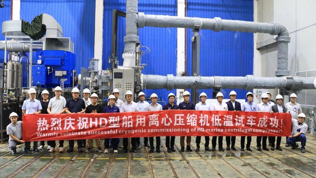 10月14日,在受邀客户代表的共同见证下,神钢无锡压缩机股份有限公司HD型船用离心压缩机顺利完成低温试车。测试过程中,机组运行稳定,各项性能指标均达到设计预期,标志着公司在高端船用离心压缩机领域取得重要突破,尤其在低温工况技术应用方面实现实质性进展,为LNG(液化天然气)运输船的能源回收与环境控制系统提供了关键装备支撑。