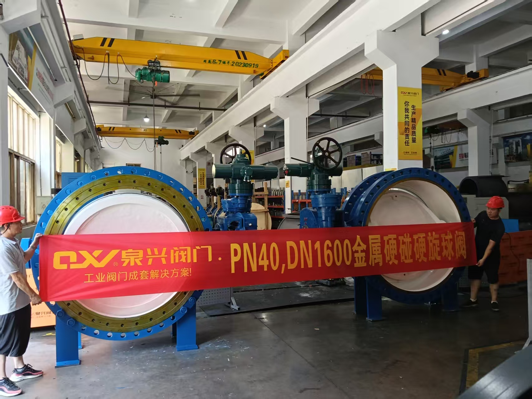 近日,泉兴阀门集团成功研发的PN40大口径高压双向旋球阀(口径达DN1600mm)正式下线,并通过国家泵阀产品质量监督检验中心的严格检测,已发往某大型电厂投入循环水系统使用。 这一突破性产品解决了高压、大口径工况下金属密封的世界性难题,标志着我国在大口径高压阀门领域迈上新台阶。