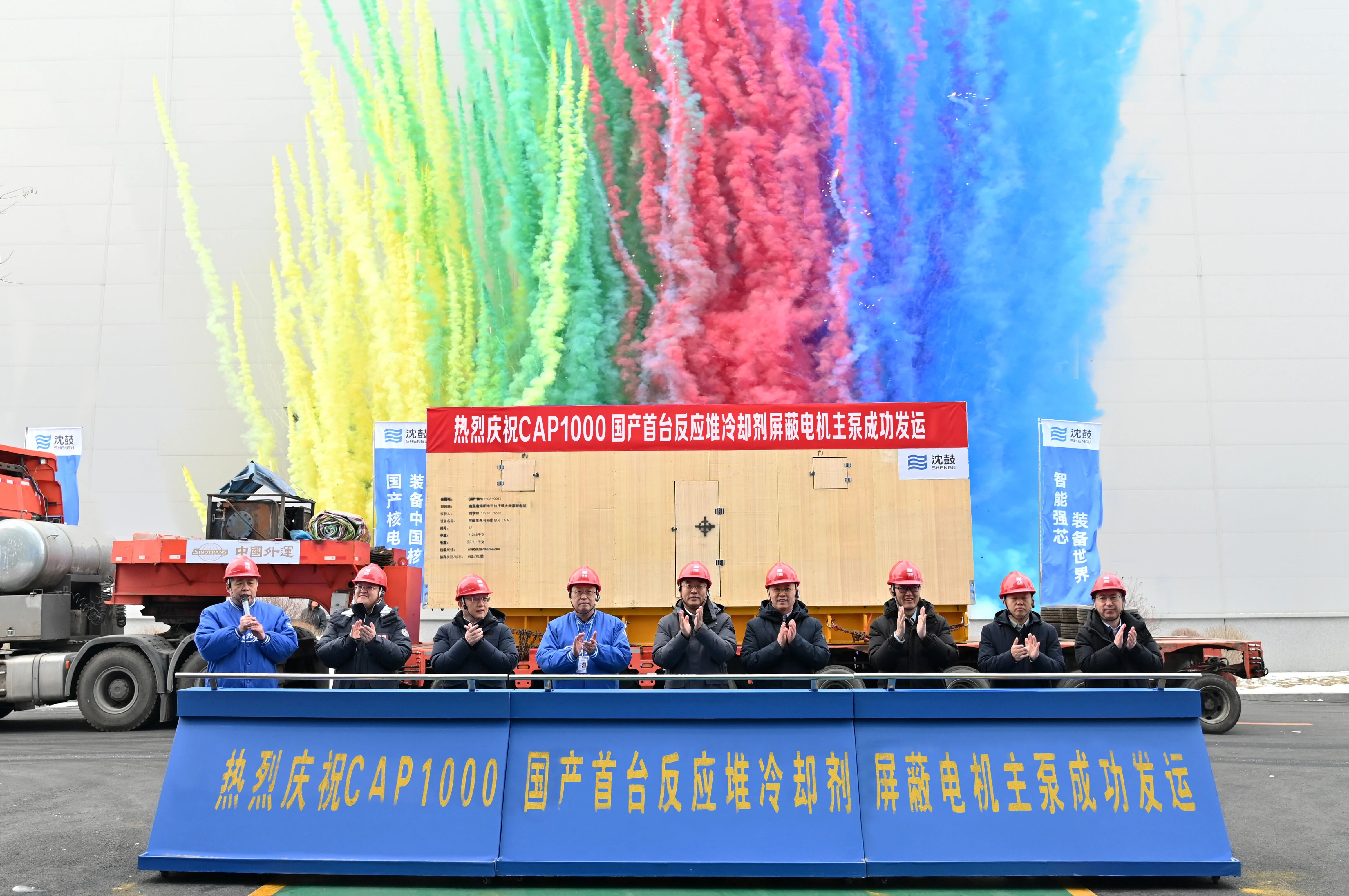 1月12日,沈鼓集团股份有限公司研制的首台国产CAP1000主泵在核电生产基地发运。