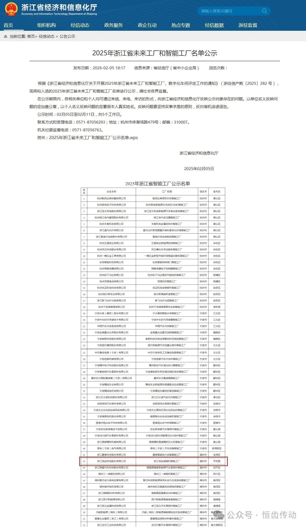 浙江恒齿传动股份有限公司(以下称为“恒齿传动”),凭借在智能化转型中的卓越实践,于2026年2月5日正式获评“2025年度浙江省省级智能工厂”。
