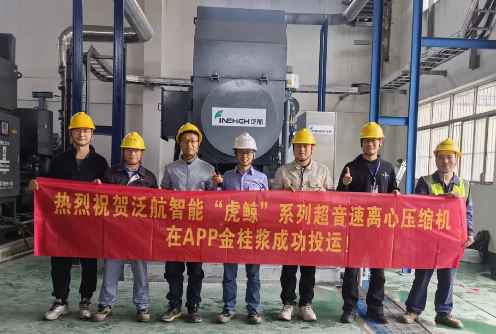 近日,由泛航智能自主研制的“虎鲸”系列超音速离心压缩机,在广西金桂浆纸业有限公司原水处理厂空压站顺利完成安装调试,并正式投入运行。