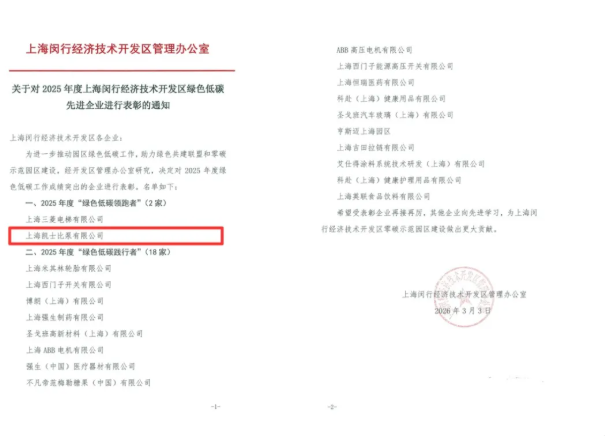 近日,上海闵行经济技术开发区发布2025年度绿色低碳先进表彰决定,上海凯士比泵有限公司荣膺园区最高等级荣誉——“绿色低碳领跑者”(全园区仅2家企业获此殊荣)。同时,公司质保总监肖凌同志获评“绿色低碳优胜者”。