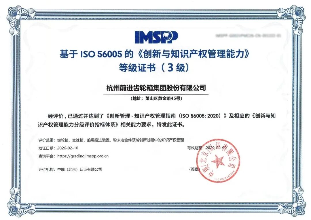 近日,杭齿集团通过ISO 56005创新与知识产权管理能力分级评价,获得3级认证证书。这标志着杭齿集团在创新与知识产权融合管理方面取得了阶段性进展。