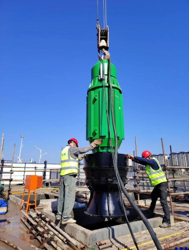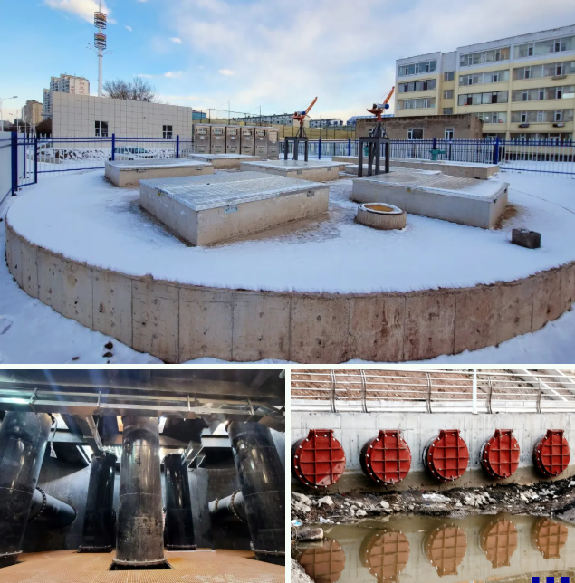 • 丛柳街泵站:5台 1000DFHQ50 潜水混流泵,排水能力 15.4 m³/s,总功率 2500kW。